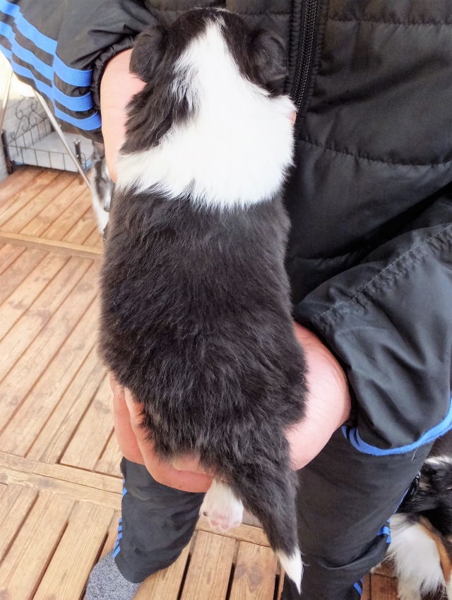 ネットブリーダーズを拝見し、バイブルーで青い目の子犬「銀くん」に一目ぼれしました。また、平山ブリーダー様の口コミがとても良かったこともあり、不安なく連絡をさせていただきました。お問い合わせ後すぐに丁寧な返信をいただき、見学の日程もスムーズに決まりました。 実際に伺うと、かわいいたくさんのシェルティちゃん達に迎えられ、たくさんの質問にも丁寧に答えてくださり、大変安心しました。お迎えした銀くんは、最初の1日はおとなしく心配になるほどでしたが、2日目からは甘えたり鳴いたりと元気を取り戻し、とても可愛い姿を見せてくれています。 平山ブリーダー様の元で大切に育てられてきたことがよく分かり、銀くんをお迎えできて心から良かったと思っています。 素敵なご縁をありがとうございました。(福島県 女性)