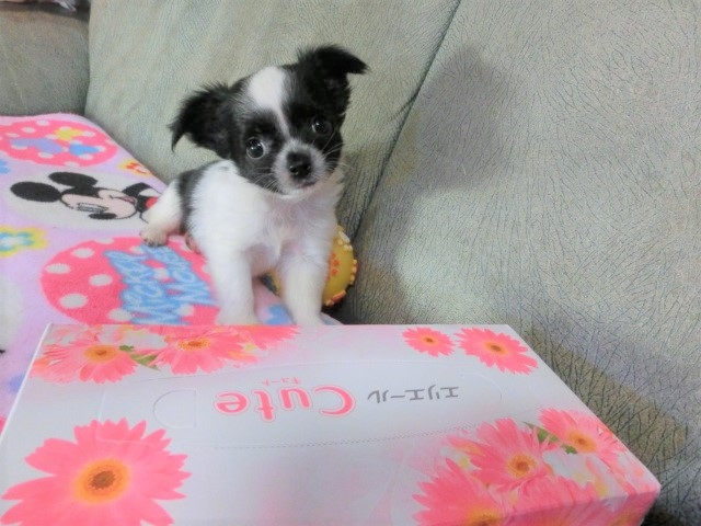 大きさをティッシュ箱と比較成犬時に2k前後の小ぶり君