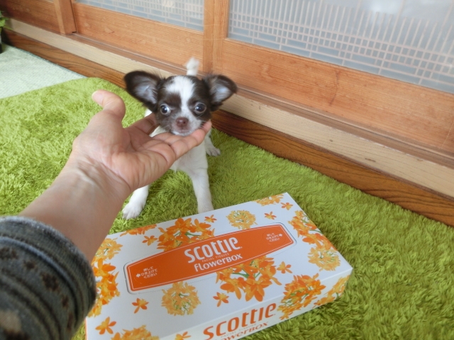 | コメント | パパ:レッドロング1.7k ママ:チョコタンホワイト2.6k ※ ホワイト地にチョコカラー左右対称が綺麗 極小サイズでも食欲旺盛の頼もしさプレミアム子犬 ※ 素直で扱い易い癒しの子犬は飼い始めからの躾が重要なので十分にアドバイスいたします(遠隔のお迎えの方でも安心:面会時もお電話・メール) ※飼い始め応援!・・スターターグッズは、仕入価格のままお譲り 始めての方でも直ぐに飼い始めることができます ※ 生体代と別途代(空輸等交通費とワクチン代)全てに於いて消費税をいただいておりません。 ●ブリーダーから1カ月100%動物保険プレゼント(シェアNO.1のアニコム損保動物保険代理店ブリーダー) ★性格 おっとり穏やか 無駄吠えも無く人懐こい 近親で交配しておらず疾病になり難く賢い リビングで誕生育ち人にも人の生活にも慣れ刺激がいっぱい頭の良い子 兄弟仲間と遊び育る環境で社会性もあり多頭飼いにも向いていて情緒が安定 ★容姿 ホワイトボディにチョコの左右対称牛模様が綺麗 軟らかく艶々毛足は毛量が増したら更に高級わんこに 極小サイズで大人になっても子犬のように見られそう 容姿全体がチワワの可愛さ満載 優しくつぶらな瞳・アップルヘッド・短い鼻は直角 幼い故に少し垂れている耳は立ってきます 足と胴のバランスが良く可愛い 日々のドッグランで極小でも足腰丈夫元気が一番 ★健康状態・・良好 混合ワクチン済・健康診断良好・駆虫済でのお渡し (健康診断書とワクチン証明書有添付)親元に自然に乳離する迄、充分居て愛情・成長期の免疫もしっかり貰っていて心身共に安定しています。 ★環境・・・仲間・私達人間とお迎えまでずっと一緒に生活し豊かな表情のある穏やかで社会性のある性格が培われています。当方と同じ環境と言える人の生活にも直ぐに馴染みます。 親から早く離されたり、兄弟仲間と遊んだ経験の少ない子は突然理由なくキレたり、獰猛だったりと昨今、問題視されています。 その点当方出身の子犬は、人慣れしていて獰猛だったりかんしゃくを起こすことも無くお迎え後甘えて直ぐに慣れてくれると喜びの声を頂いております。明るく元気ですが、お隣等が近いマンションにも適した穏やかさです。 ★躾 ゲージの中でのトイレシートでの躾済後のお渡し。お迎え後の違った環境でのお家での躾は、アドバイスします。 *アニコム動物保険の代理店 (動物保険会社では、倒産した時に国が保証する2つの保険会社の1つ)手厚い補償で好評の日本最大の動物保険会社です。(ブリーダーショップとしては、当店が唯一認定店)・・・アニコム1ヵ月100%動物保険プレゼント。 ※ 動物取扱士・家庭犬トレーナー・トリマー・小動物看護士・ペット繁殖指導員の居るブリーダーショップ ★アフターフォロー:繁殖直売のブリーダーショップで、中間業者やペットショップに渡すことをしないで、一般ご家庭の飼い主様にのみお渡ししています。 きちんとお迎え先が分かることにより一生に渡り心身共の健康に貢献していきたいと願っています。 <プレゼント> ★ アニコム100%1ヵ月保険 ★ 躾のDVDとプリント ★ スターターグッズ わんこ母子手帳・フード・ブランケット ※ 飼い主様準備:ゲージ(手配のお手伝い無料)・トイレシート・フード皿・ベッド・給水器等 (当店ご来店お迎えの場合、子犬に適したゲージ・ベッド・給水器等をネット最安値で購入したその価格のままで上記グッズをお譲りしています。又、歯の生え変わる月齢まで適したハードキャリ―も最安値価格です) ※始めての方でも安心・いろいろとアドバイスいたします。 <当舎の特徴> ★ 心身共に管理できる少数の子犬を育てています。 ★ 多種カード会社認定店・・・VISA・Master・UC・JCB・AMERICANEXPRESS・Nicos・Diners・DC・UFJ 決済手数料の5%は当店がお支払いサービスとなっています。 ★ 多頭飼いや2頭目をお迎えの方にも適した社会性を身につけた子犬をお譲りしている実績有り。 ★ 引越や旅行・夏・冬等の計画でお迎え延期でも無料でお預かり。 ★ ワクチンと健康診断書添付 ★ ♂犬は当方誕生子犬を残さず、他舎の子犬を迎え育て近親交配が無い。よって欠陥の子犬が誕生リスクが少ない ★ 子犬に問題が起きやすい老犬ではなく、若い両親でブリーディング。 ★仲介販売・・空港等でお迎えの際に中間業者が当方代理で子犬を引渡しします 仲介費用は地域により異なりますが、半額は当方が負担いたします。 (お迎えあの際に約15,000円前後の半額を負担程度) 対面され、万が一お気に召さずお迎えを断ることも可能ですが、仲介手数料・送料の往復分は発生しており申し受けますのでご了承ください。 ★感謝・・・当舎の交配犬は、若いうちに里親様にお譲り(当方からお迎え又その方の紹介・近隣方:面接の上、可愛がっていただける方) |