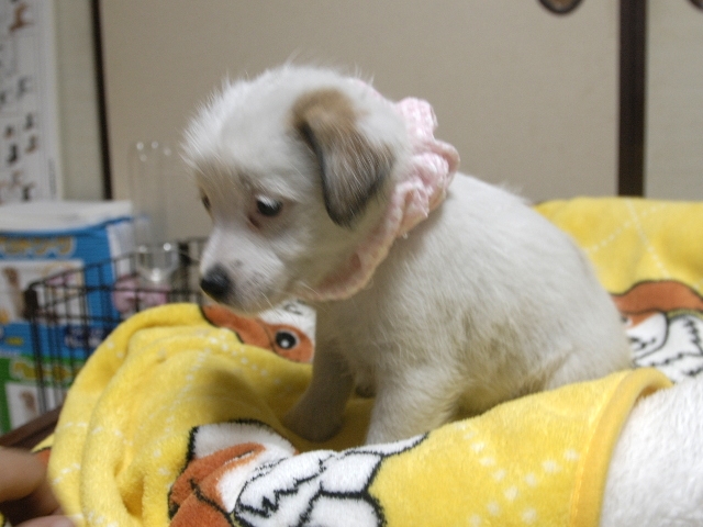| コメント | お父さん(原光一さん所有)、お母さんフラワーちゃんから生まれたキュートな女の子です。 可愛いですよ。 噛み合わせはまだ確認できません。 お曲がり、でべそ、ミスカラー等はありません。 (ピンクリボンちゃん) |