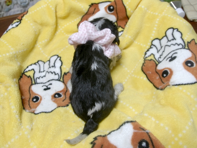 | コメント | お父さんがJKCチャンピオンの家重君、お母さん小柄なチャンピオン直子のスカーレットちゃんから生まれたキュートな女の子です。(ピンクリボンちゃん) 可愛いですよ。 噛み合わせはまだ確認できません。 お曲がり、でべそ、ミスカラー等はありません。 チャンピオン直子 |