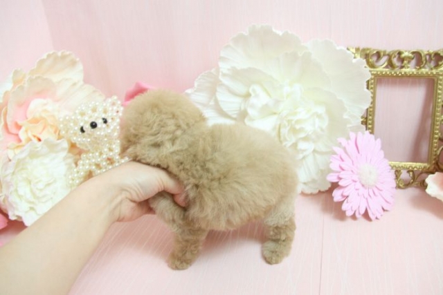 | コメント | 4月8日撮影 色素の濃い~ お鼻もアイラインもくっきり♪ 毛量多め!!! お顔まんまるで可愛い子です^^ 性格は人なつっこい、明るい子です。 4月8日現在 生後68日で体重610gです。 成犬時予想体重は~2.3kg前後のタイニーサイズ予想です。 父 1.2kg 母2.4kg 1回目のワクチンは接種済みです。 |