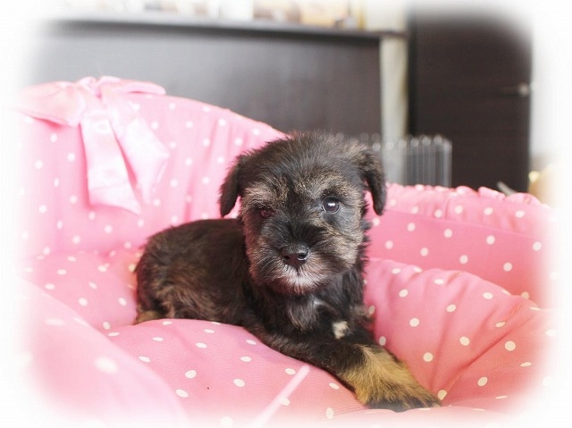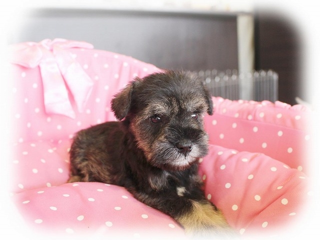 シュナウザーを主力にされているブリーダーさんだと認識しており、ボスちゃんはどうかなあと正直不安でしたがとても可愛く健康的なボスちゃんをいただきました。 掲載されていた写真より実物は想像以上に可愛くて即決し見学させていただいたその日に連れて帰りました。連絡をして、翌日行きますぅって勝手な申し出にも関わらず敏速かつ親切に対応して頂き大満足です。契約に対しても一つ一つ丁寧に説明してくださり、わかりやすかったです。この度は可愛いボスちゃんとのご縁をいただき、本当に有り難うございました。 (大阪府 女性)