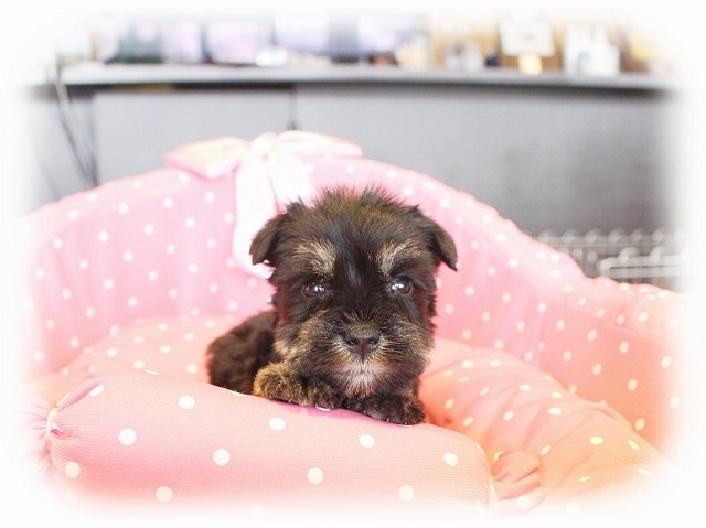 シュナウザーを主力にされているブリーダーさんだと認識しており、ボスちゃんはどうかなあと正直不安でしたがとても可愛く健康的なボスちゃんをいただきました。 掲載されていた写真より実物は想像以上に可愛くて即決し見学させていただいたその日に連れて帰りました。連絡をして、翌日行きますぅって勝手な申し出にも関わらず敏速かつ親切に対応して頂き大満足です。契約に対しても一つ一つ丁寧に説明してくださり、わかりやすかったです。この度は可愛いボスちゃんとのご縁をいただき、本当に有り難うございました。 (大阪府 女性)