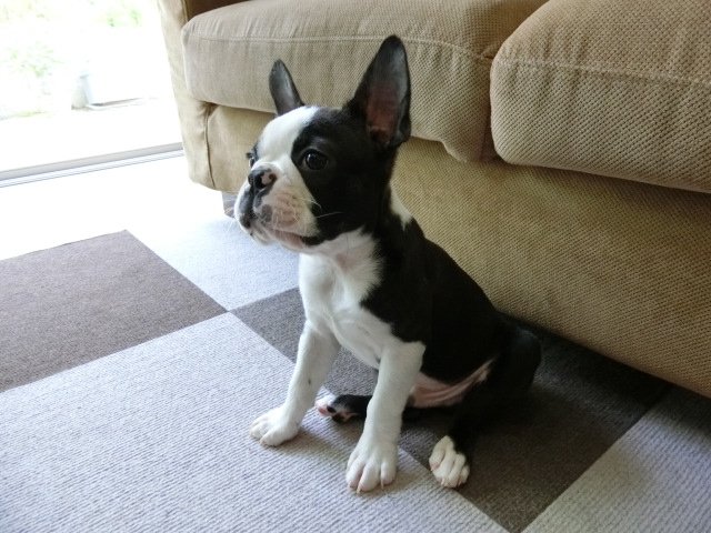 この度は可愛い元気なボストンテリアを譲っていただきありがとうございました。見学の時にいろいろな質問や要望に快く対応してくださいました。お話を聞いていて岩井様が自信をもってブリーディングされていることがよくわかり心強かったです。また不安になり突然電話してわけのわからない質問をしても親切に対応してくださいました。ありがとうございました。早いもので家族の一員となって3ヶ月経過しました。私達夫婦の太陽になってくれているかけがえのないわんちゃんを大切に育てていきたいと思います。(千葉県 女性)
