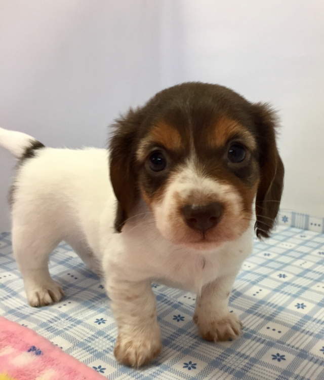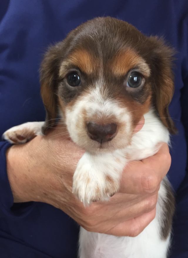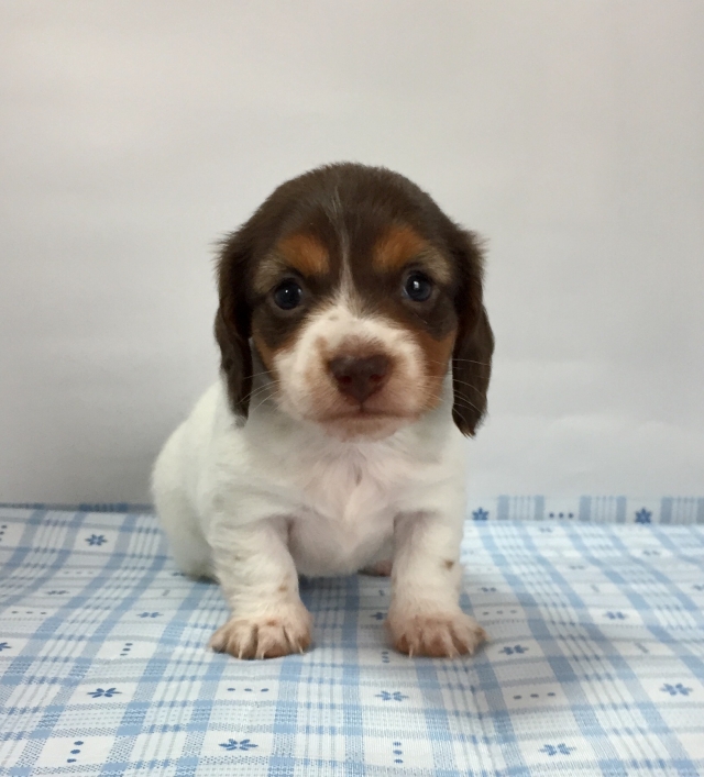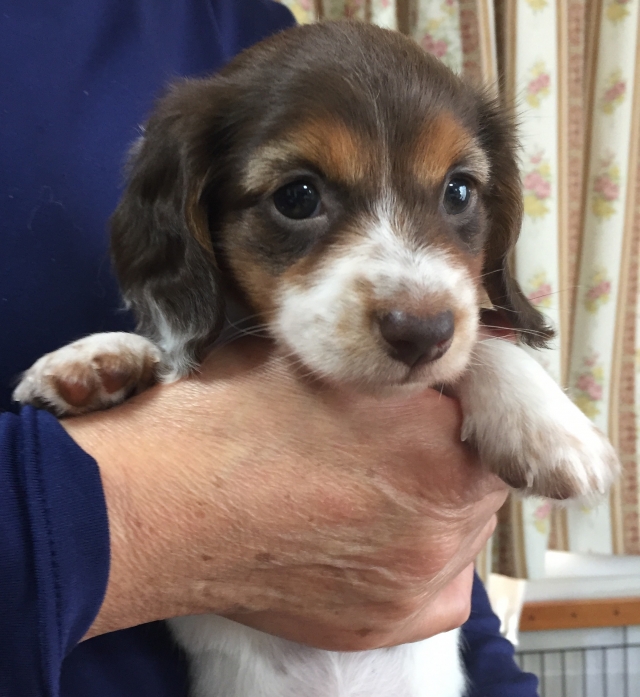 ミニチュア・ダックスフンド(ロング) チョコレート タン パイボールド ♀(女の子) 神奈川県【 ブリーダーズ 】