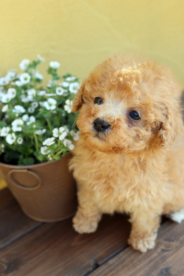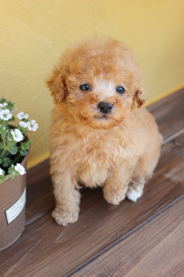 | コメント | ママ、アプリコット。パパ、レッドの両親から誕生しました。 可愛らしいお顔の子です。 両親犬は通常トイサイズですが、両親犬ともにTカップの血が入っているため、子犬は小柄な子が多いかけ合わせです。 *サイズ保証はしておりません。 トイレトレーニング、離乳食トレーニング中! マズルが短く、つぶらなおメメが可愛らしい子です。 コートのカール、量も十分ありますのでカットバリエーションが楽しめます。 当犬舎久々のトイプーの赤ちゃんです♪ 当犬舎のトイプーは大人しく育てやすいことでオーナー様に喜んでいただいております。 ご購入後のアフターフォローをしっかりさせていただく事で、育て方やしつけなどのご指導をさせていただき、子犬もオーナー様も一緒に生活しやすい環境づくりのお手伝いをしております。 |