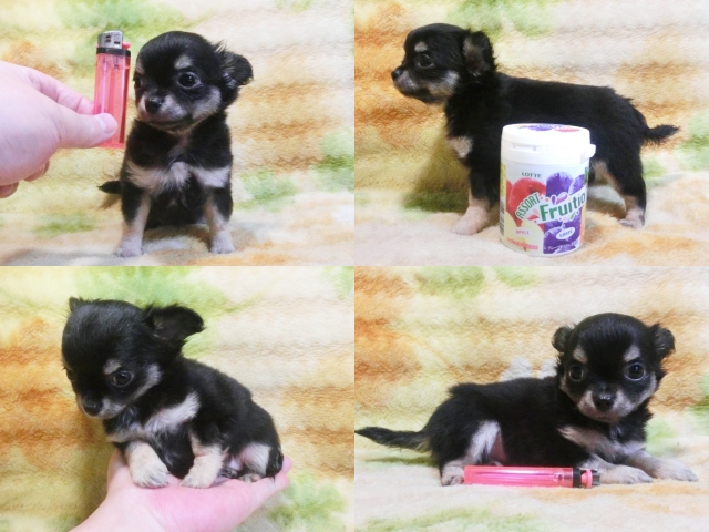 | コメント | ☆極小サイズ!お目々クリクリ!!☆お顔小っちゃい可愛い女の仔♪ 毛量も多くホントめっちゃ綺麗な色素の濃いブラックタンです^^ 動き回る姿がとっても愛らしい☆愛嬌たっぷりちょこちょこ最高!! 被毛は多分全体に長くなるかなり派手目なタイプだと思います^^ 小さくてもとっても元気!!同サイズの仔たちと仲良く遊んでます♪ 生後60日の体重は約650g、成犬予想体重2㎏未満だと思います!! 無理に小さく育てた極小とは違ってとても元気な健康優良児♪ 身体のバランスが良くしっかりした硬い胴で骨量多い丈夫な仔☆ 現状噛合せや骨格・関節形成など欠点の心配はありません!! 離乳も済み食欲旺盛でドライでカリカリ!!いつでもお引き渡しOK♪ 素敵なご家族様からのお問い合わせをお待ちしております^^ 【その他諸費用】 6種ワクチン接種費用:6千円【税・画像入証明書付・健康診断込】 ※お迎えの場合で【生体代金】+【ワクチン接種費用】のみです。 ●血統書登録団体:JKC(※3ヵ月以上要す事もあります) |