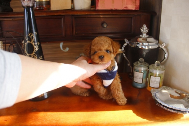本日、我が家に小さな可愛い女の子のトイプードルがやって来ました。 遠距離という事もあり、暑い時期、飛行機の事なども心配していましだが、家に着いた途端、元気に走り、食欲も旺盛で、今まで大切に育てられてきたのだなぁ、ということがよくわかりました。 連休中にも関わらず、戸田様には、伊丹空港まで連れて来て頂き、こちらの質問にも的確に答えて下さいました。 大変信頼できるブリーダーです。 遠距離で悩まれている方も、安心して新しい家族を迎えられますよ。(兵庫県 男性)