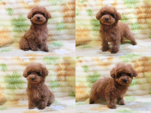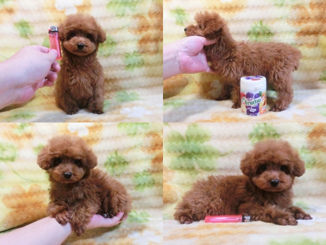| コメント | ☆☆ティーカップサイズ予想☆☆ホント小っちゃくてビックリですよ!! クリクリのお目々に超短いお鼻チビチビめっちゃカワイイ女の子♪ のんびりとした優しい性格で初めての方にでも飼い易い仔です☆ 毛質最高しっかりした巻毛に毛量も充分で綺麗なレッドですよ^^ 小さくてもとっても元気テーカップ兄弟たちと仲良く遊んでます♪ 生後90日の体重は約980g成犬予想体重2kg未満だと思います!! 身体のバランスが良くしっかりした硬い胴で骨量多い丈夫な仔☆ 現状噛合せや骨格・関節形成など欠点の心配はありません!! 離乳も済み食欲旺盛でドライでカリカリ!!いつでもお引き渡しOK♪ 素敵なご家族様からのお問い合わせをお待ちしております^^ 【その他諸費用】 6種ワクチン接種費用:6千円【税・画像入証明書付・健康診断込】 ※お迎えの場合で【生体代金】+【ワクチン接種費用】のみです。 ●血統書登録団体:JKC(※3ヵ月以上要す事もあります) |