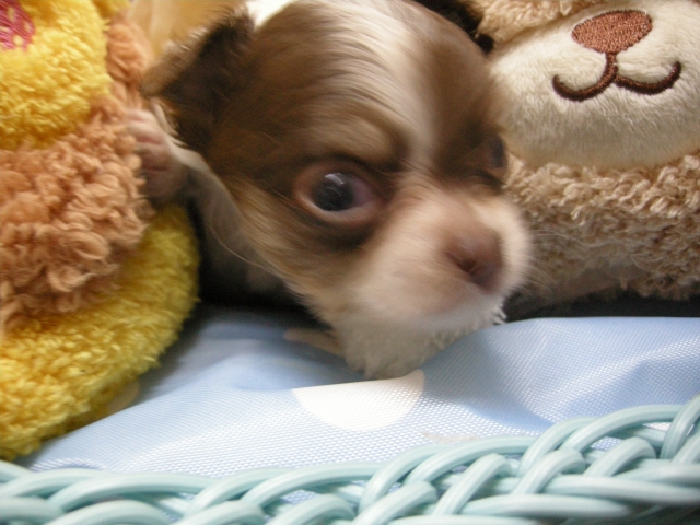 | コメント | お母さん『チコチコ』ちゃん。チョコレートクリーム&ホワイトの小さなお母さん。何と2.1㌔! お父さん『コロク』君。チョコクリームのイケメン君!2.5㌔! 可愛い小さなチワワになりますよ! 皆様からのお問い合わせ、ご見学お待ちしています! 大阪市 濱田 |