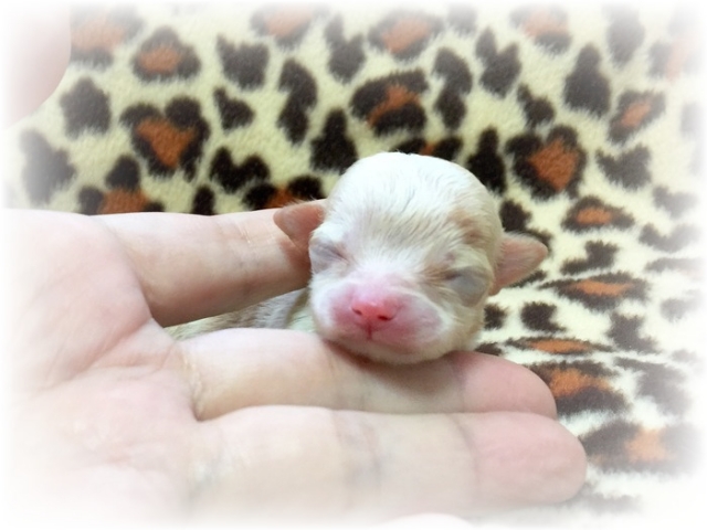この度はとてもかわいい子をお譲りいただきありがとうございました。あまりにも小さくて不安でしたが、いろいろとお話させていただき安心して迎えることができました。また、ブリーダー様と連絡を取りあってから我が家に迎え入れたのが2日後という超スピードでしたが、快く対応してくださりました。伊窪ブリーダー様には感謝の気持ちでいっぱいです。(兵庫県 女性)
