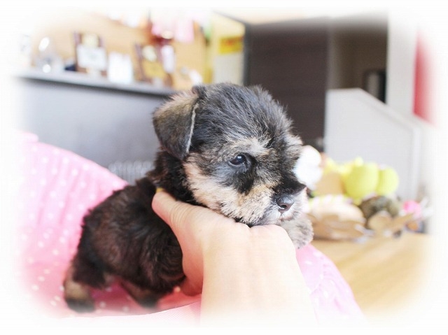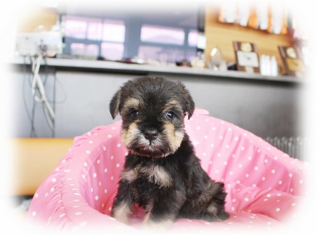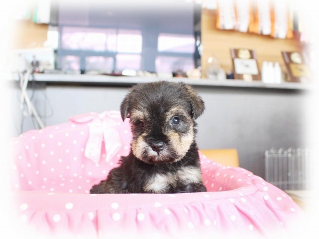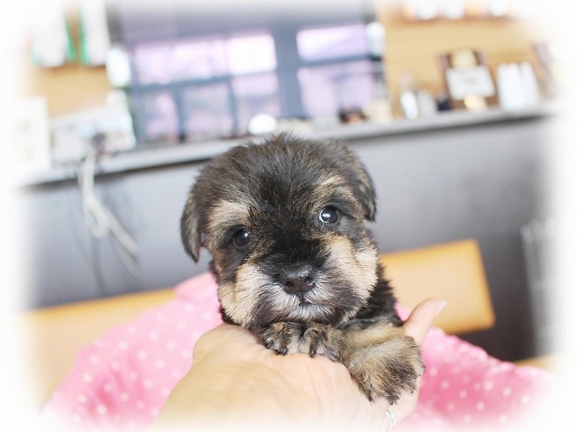 シュナウザーを主力にされているブリーダーさんだと認識しており、ボスちゃんはどうかなあと正直不安でしたがとても可愛く健康的なボスちゃんをいただきました。 掲載されていた写真より実物は想像以上に可愛くて即決し見学させていただいたその日に連れて帰りました。連絡をして、翌日行きますぅって勝手な申し出にも関わらず敏速かつ親切に対応して頂き大満足です。契約に対しても一つ一つ丁寧に説明してくださり、わかりやすかったです。この度は可愛いボスちゃんとのご縁をいただき、本当に有り難うございました。 (大阪府 女性)