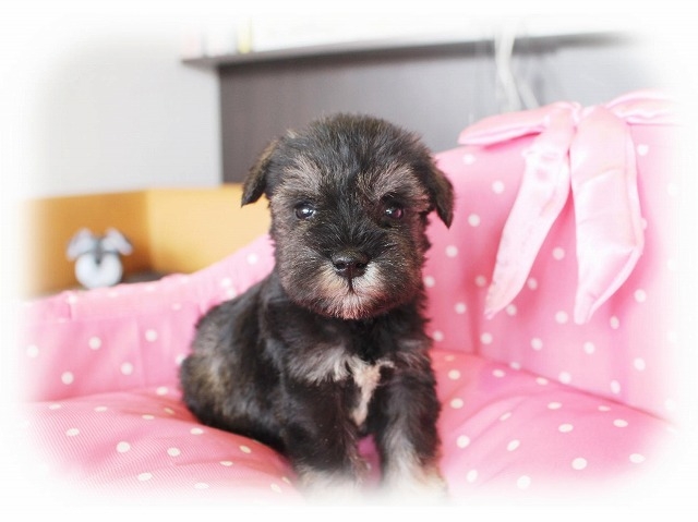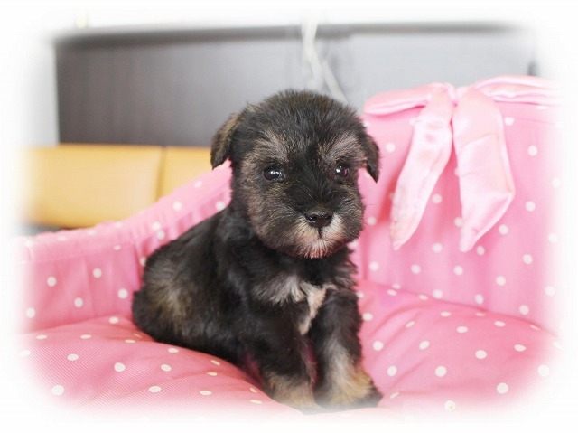 シュナウザーを主力にされているブリーダーさんだと認識しており、ボスちゃんはどうかなあと正直不安でしたがとても可愛く健康的なボスちゃんをいただきました。 掲載されていた写真より実物は想像以上に可愛くて即決し見学させていただいたその日に連れて帰りました。連絡をして、翌日行きますぅって勝手な申し出にも関わらず敏速かつ親切に対応して頂き大満足です。契約に対しても一つ一つ丁寧に説明してくださり、わかりやすかったです。この度は可愛いボスちゃんとのご縁をいただき、本当に有り難うございました。 (大阪府 女性)