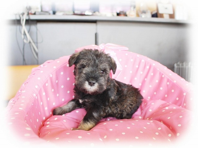 シュナウザーを主力にされているブリーダーさんだと認識しており、ボスちゃんはどうかなあと正直不安でしたがとても可愛く健康的なボスちゃんをいただきました。 掲載されていた写真より実物は想像以上に可愛くて即決し見学させていただいたその日に連れて帰りました。連絡をして、翌日行きますぅって勝手な申し出にも関わらず敏速かつ親切に対応して頂き大満足です。契約に対しても一つ一つ丁寧に説明してくださり、わかりやすかったです。この度は可愛いボスちゃんとのご縁をいただき、本当に有り難うございました。 (大阪府 女性)