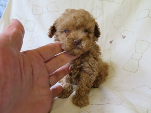 | コメント | 両親アプリコット お父さんはティーカップ 可愛い子です お母さんは活発ですが大人しい子です 5/8の体重は475g 多分ティーカップだと思います マズルが短く可愛い子です 獣医の診断ワクチンを接種し お渡しします |