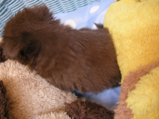 | コメント | お母さん『チコチコ』ちゃん。チョコレートクリーム&ホワイトの小さなお母さん。何と2.1㌔! お父さん『コロク』君。チョコクリームのイケメン君!2.5㌔! ポメラニアンみたいにすごい毛量ですよね |