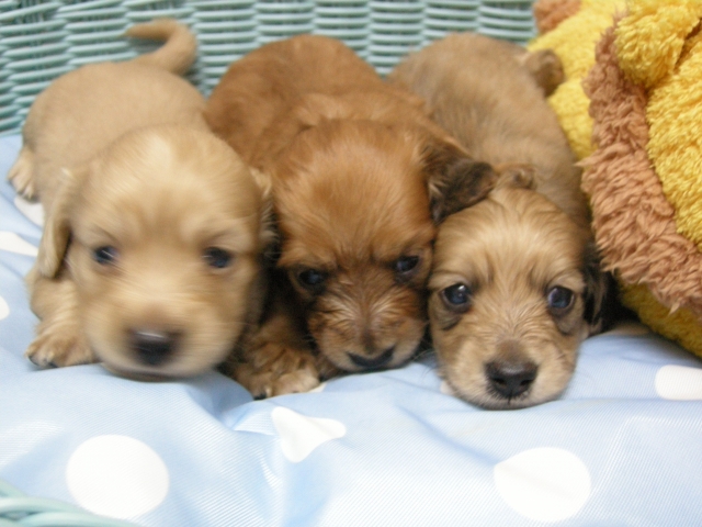 | コメント | お父さんPRAクリアーの可愛いイケメン君2.8㌔『カイト』君! お母さんレッドの小さいカニヘン『オチビ』ちゃん!3.5㌔! ダックスは特に自信あります!!!!!!!!!! 皆様からのお問い合わせご見学お待ちしています! 大阪市 濱田 |