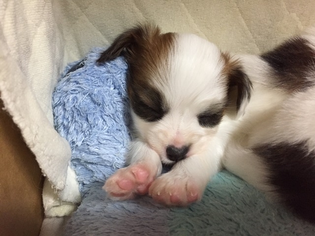 お顔の模様が個性的な可愛く元気な仔犬を譲って頂きました。 都合上お迎えまで2週間弱空いてしまいましたが、その間もしっかりと仔犬のお世話をして頂き、そして仔犬の様子を画像や動画で頻繁に送って頂けました。 吉永ブリーダーさんのお陰で初めて仔犬を迎える私達も、不安なく迎え入れる事ができました。ありがとうございました。 今後ともよろしくお願いします。 (岐阜県 男性)