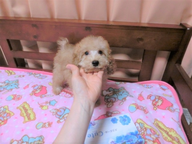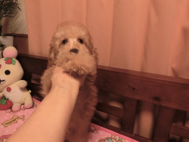 | コメント | パパ:レッド2.2k ママ:アプリコット3.8k ※ 月齢的にも心身共に安定・健康安心お迎えトイサイズでも大きな7k以上になる兄妹でも最も大きな子 (先祖に大きな子が居る) (多忙にてネット紹介が遅れこの度この月齢で始めての紹介です) ★プードルに心配されるパテラの問題無し(膝が丈夫な上、当方は予防で日々のマッサージを してます) ★長生きの秘訣 お迎え時に直接来店では無く空港等遠隔の場合でも飼主様が楽ちん子犬が自分で歯磨き習慣が身につく方法をご指導しどの子もできるようになっております(お迎え後の確認済) ※ 素直で扱い易い癒しの子犬は飼い始めからの躾が重要なので十分にアドバイスいたします(遠隔のお迎えの方でも安心:面会時もお電話・メール) ※飼い始め応援!・・スターターグッズは、仕入価格のままお譲り 始めての方でも直ぐに飼い始めることができます ※ 生体代と別途代(空輸等交通費とワクチン代)全てに於いて消費税をいただいておりません。 ●ブリーダーから1カ月100%動物保険プレゼント(シェアNO.1のアニコム損保動物保険代理店ブリーダー) ★性格 おっとり穏やか優しい子 近親で交配しておらず疾病になり難く賢い リビングで誕生育ち人にも人の生活にも慣れ刺激がいっぱい頭の良い子 兄弟仲間と遊び育る環境で社会性もあり多頭飼いにも向いていて情緒が安定 ★容姿 多くの方が希望されるドアーフタイプ 成犬時に8k超えが目指せるチッチ感あふれる希少な子 ベアーやブーツカットが綺麗にできる柔らか毛量も魅力的 つぶらな瞳・短い鼻と足が手触りよくまるで縫いぐるみのよう (ブローしたてで写真はくるくる感が今一です) 本来、巻も良くふわふわ 健康第一 安心普通サイズ 日々のドッグラン・マッサージで極小でも足腰丈夫元気が一番 プードルに心配されるパテラ無し ★健康状態・・良好 混合ワクチン済・健康診断良好・駆虫済でのお渡し (健康診断書とワクチン証明書有添付)親元に自然に乳離する迄、充分居て愛情・成長期の免疫もしっかり貰っていて心身共に安定しています。 ★環境・・・仲間・私達人間とお迎えまでずっと一緒に生活し豊かな表情のある穏やかで社会性のある性格が培われています。当方と同じ環境と言える人の生活にも直ぐに馴染みます。 親から早く離されたり、兄弟仲間と遊んだ経験の少ない子は突然理由なくキレたり、獰猛だったりと昨今、問題視されています。 その点当方出身の子犬は、人慣れしていて獰猛だったりかんしゃくを起こすことも無くお迎え後甘えて直ぐに慣れてくれると喜びの声を頂いております。明るく元気ですが、お隣等が近いマンションにも適した穏やかさです。 ★躾 ゲージの中でのトイレシートでの躾済後のお渡し。お迎え後の違った環境でのお家での躾は、アドバイスします。 *アニコム動物保険の代理店 (動物保険会社では、倒産した時に国が保証する2つの保険会社の1つ)手厚い補償で好評の日本最大の動物保険会社です。(ブリーダーショップとしては、当店が唯一認定店)・・・アニコム1ヵ月100%動物保険プレゼント。 ※ 動物取扱士・家庭犬トレーナー・トリマー・小動物看護士・ペット繁殖指導員の居るブリーダーショップ ★アフターフォロー:繁殖直売のブリーダーショップで、中間業者やペットショップに渡すことをしないで、一般ご家庭の飼い主様にのみお渡ししています。 きちんとお迎え先が分かることにより一生に渡り心身共の健康に貢献していきたいと願っています。 <プレゼント> ★ アニコム100%1ヵ月保険 ★ 躾のDVDとプリント ★ スターターグッズ わんこ母子手帳・フード・ブランケット ※ 飼い主様準備:ゲージ(手配のお手伝い無料)・トイレシート・フード皿・ベッド・給水器等 (当店ご来店お迎えの場合、子犬に適したゲージ・ベッド・給水器等をネット最安値で購入したその価格のままで上記グッズをお譲りしています。又、歯の生え変わる月齢まで適したハードキャリ―も最安値価格です) ※始めての方でも安心・いろいろとアドバイスいたします。 <当舎の特徴> ★ 心身共に管理できる少数の子犬を育てています。 ★ 多種カード会社認定店・・・VISA・Master・UC・JCB・AMERICANEXPRESS・Nicos・Diners・DC・UFJ 決済手数料の5%は当店がお支払いサービスとなっています。 ★ 多頭飼いや2頭目をお迎えの方にも適した社会性を身につけた子犬をお譲りしている実績有り。 ★ 引越や旅行・夏・冬等の計画でお迎え延期でも無料でお預かり。 ★ ワクチンと健康診断書添付 ★ ♂犬は当方誕生子犬を残さず、他舎の子犬を迎え育て近親交配が無い。よって欠陥の子犬が誕生リスクが少ない ★ 子犬に問題が起きやすい老犬ではなく、若い両親でブリーディング。 ★仲介販売・・空港等でお迎えの際に中間業者が当方代理で子犬を引渡しします 仲介費用は地域により異なりますが、半額は当方が負担いたします。 (お迎えあの際に約15,000円前後の半額を負担程度) 対面され、万が一お気に召さずお迎えを断る