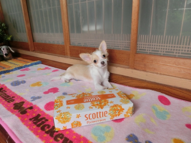 大きさをティッシュ箱と成犬時に2.5k前後小ぶりちゃん