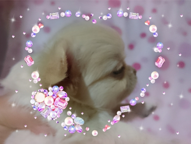 | コメント | 画像ご覧いただいたままの超➰可愛い❤お顔、いつも尻尾フリフリの性格は➰もうメロメロです。 足も短めでふわふわコート!これまた肌触り100% 詳しくはお問い合わせください。 |