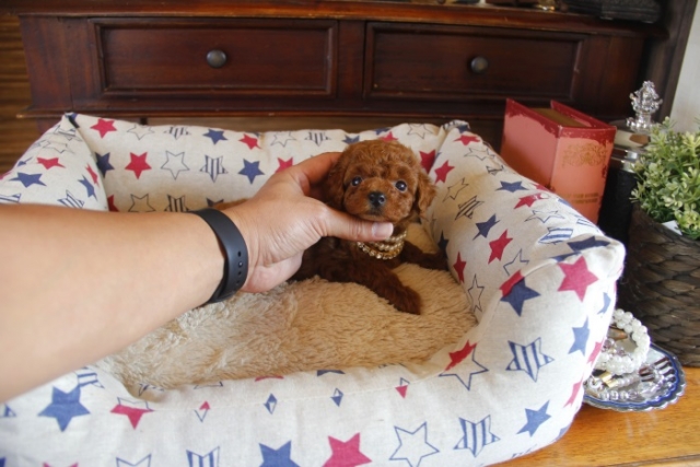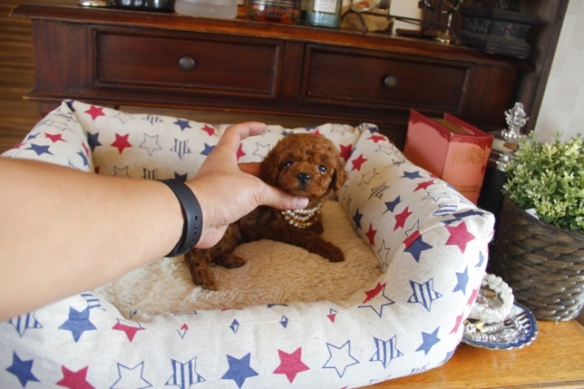 本日、我が家に小さな可愛い女の子のトイプードルがやって来ました。 遠距離という事もあり、暑い時期、飛行機の事なども心配していましだが、家に着いた途端、元気に走り、食欲も旺盛で、今まで大切に育てられてきたのだなぁ、ということがよくわかりました。 連休中にも関わらず、戸田様には、伊丹空港まで連れて来て頂き、こちらの質問にも的確に答えて下さいました。 大変信頼できるブリーダーです。 遠距離で悩まれている方も、安心して新しい家族を迎えられますよ。(兵庫県 男性)