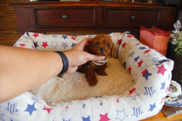 | コメント | 父1.4kg 母2.8kg さて少し早めではありますが3姉妹のレッドの女の子達の登場です この生後で、この瞳の大きさに濃いレッド♪ トイレのしつけはすでに完璧にゲージ内でできます。 夜間のサポートもしていますので初めての方でも安心してお迎えくださいね 性格は大人しく飼いやすい子です♥ ペットショップやオークション出しのブリーダーと違い欧米のブリーディング同様、親や兄弟と社会期を過ごさせることで 人間と暮らした時にスムーズに暮らせるようにしております。 親犬達も家族として朝7時からドックランで遊び、全室冷暖房完備の部屋で過ごし、専門のスタッフや専門学校の方々と協力し合いながら 衛生管理に努めております。 犬舎の特徴としましては、東京や神奈川近郊の為マンションのお客様が8割を占めます。その為小さな1キロから2.8キロまでに収まるように、 母犬を2.8キロまでと決めてブリーディングをしている為、後で極端に大きくなる子はいません。 瞳の丸く大きなところやマズル(鼻先)が短いもの特徴で、父犬、母犬、全て私が全国の可愛いトイプードルを一頭、一頭厳選して親犬としてブリーディングした子犬のみを掲載しております。 こだわりとしては、お客様がお迎えされた後、その子がTV出演、雑誌やカレンダーのモデルとして活躍の場が増え我が家を忘れないでいてもらいたい為、 本気でこだわりを持って常にトイプードルを飼うなら此処だと皆様全員に思われる犬舎でありたいと思います。 ありがたいことに今では、雑誌やTV出演、カレンダーなど多くの出身トイプードルちゃんたちが可愛く撮影されお客様からも喜びの声を頂いております。 我が家は35頭の小さな犬舎ではありますが、頭数が多いところでは管理が行き届かない、PRA若年性白内障などの遺伝性疾患の発症がないように努めております |