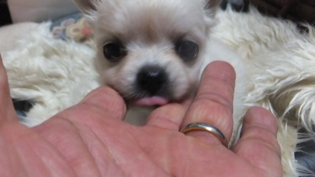 玄関でたくさんのワンちゃんと会えました。どの子もとても可愛くて人懐こくて、愛情いっぱいに育てられているのがわかりました。老犬のお世話もされていて犬のことをよくご存知で、たくさんのアドバイスを頂きました。心からご信頼出来るブリーダーさんだと思います。お迎えしたチワワの男の子は新しい環境にも慣れて元気いっぱい、教えて頂いたとおりにフードを用意するとよく食べてくれて健康に育っています。昨年愛犬を亡くして気持ちが沈みがちでしたが、ブリーダーさんの愛情を受け継いでこの子を大切に育てていきたいと思います。良いご縁をありがとうございました。(大阪府 女性)