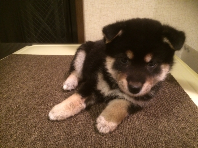 子犬を迎え入れてから1週間がたちましたが、夜鳴き、トイレトレーニングの苦労など全くしていません。とても賢い子で驚かされてばかりいます。黒柴には珍しい柄の入り方に一目惚れをして決めたのですが、性格も穏やかで最高です。この子に決めて本当に良かったです。 津守さんは、凄腕ブリーダーだと思います。これからも的確なアドバイスをよろしくお願いします。 (大阪府 女性)