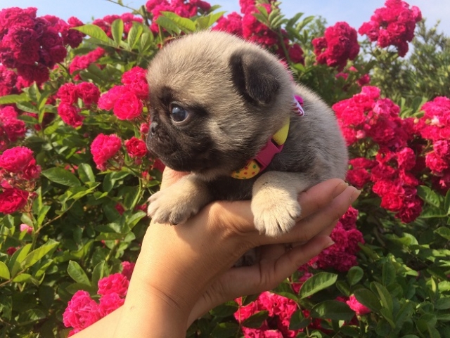鹿児島県と石川県という無謀ともいえる距離の不安がありましたが、内田さんの親切な応対で不安もストレスもなく、本日かわいいブラックとフォーンの姉妹が我家にきました。長旅の疲れも感じさせない元気っぷりと人懐っこさ、内田さんとの御縁に本当に感謝しています。パグが気になっている友達がいるので、内田さん紹介したいと思います。その節は、またよろしくお願いします!(石川県 男性)