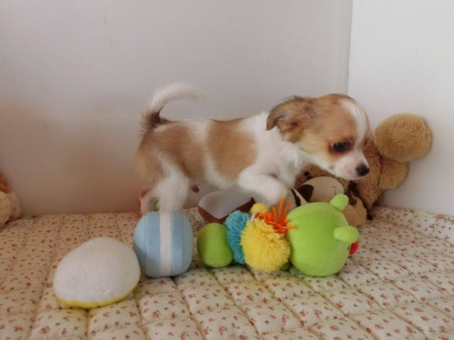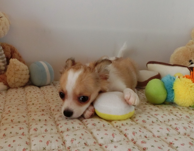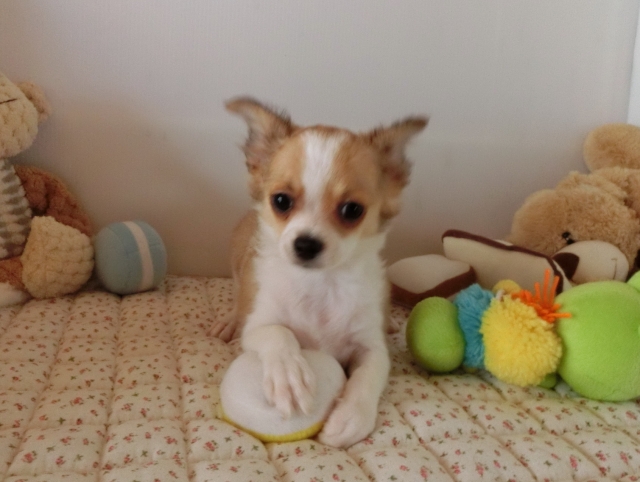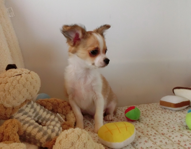 チワワ(ロング) パーティ(ホワイト&レッド) ♂(男の子) 栃木県【 ブリーダーズ 】