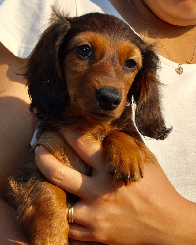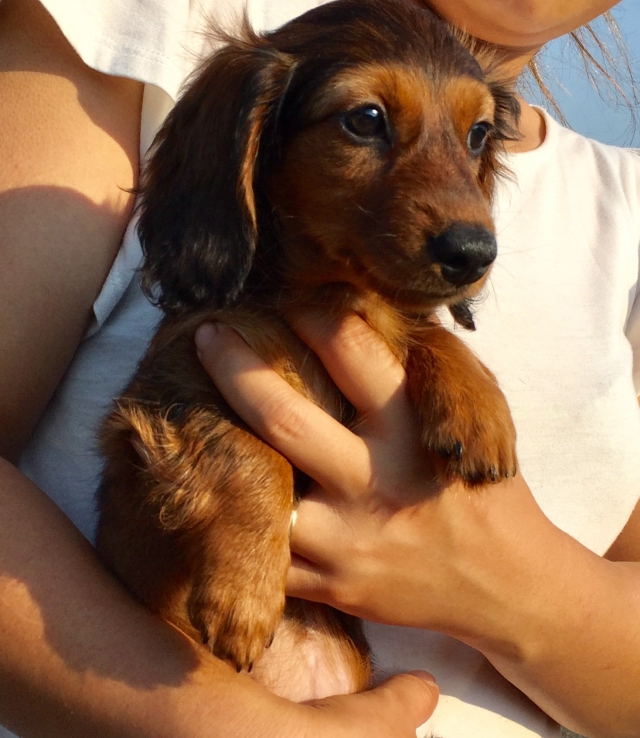 現在カニヘンダックスを飼っており、この度2頭目が欲しいと思っていたところ、細田様の子犬が目に留まりました。以前よりドイツダックスに興味があり、実際お宅に伺って直接子犬また両親犬を見ることができその毛色の素晴らしさに感動しました。またお話しを伺い犬に対する強い思い、深い愛情を持って育てられている事が感じられましたので、その場で即決譲渡させて頂くことになりました。 また、『もし何かありましたら24時間いつでも御連絡下さい』と… 子犬は健康的で元気一杯、人懐っこい性格でした。 ドイツダックスに興味のある方 おすすめのブリーダーさんです!(静岡県 男性)