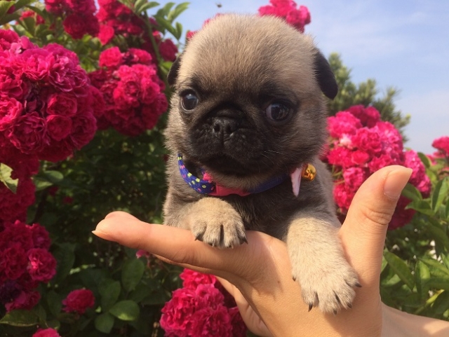 鹿児島県と石川県という無謀ともいえる距離の不安がありましたが、内田さんの親切な応対で不安もストレスもなく、本日かわいいブラックとフォーンの姉妹が我家にきました。長旅の疲れも感じさせない元気っぷりと人懐っこさ、内田さんとの御縁に本当に感謝しています。パグが気になっている友達がいるので、内田さん紹介したいと思います。その節は、またよろしくお願いします!(石川県 男性)