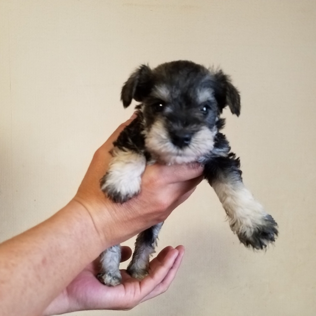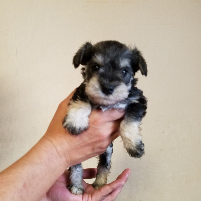 | コメント | 父親ブラック&シルバ 母親ソルト&ペッパー 面倒見のよい母犬に愛情いっぱい母乳いっぱいで ころころムチムチに育っております。 当方少ない頭数で1頭1頭手間暇・愛情を掛けながらじっくりと 育てております。 是非ご見学に来て触れてご家族の一員にお迎え頂ければ幸せです。 ご質問・ご見学日程などお気軽にご相談くださいませ。 ※お問い合わせ順ではなくご見学を優先してまいりますので ご理解下さいませ。 また遠方の方は交通費別途で直接のお届けもご相談承ります※ |