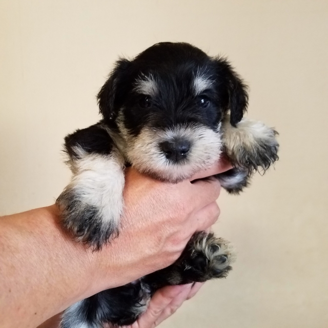 | コメント | 父親ブラック&シルバ 母親ソルト&ペッパー 面倒見のよい母犬に愛情いっぱい母乳いっぱいで ころころムチムチに育っております。 当方少ない頭数で1頭1頭手間暇・愛情を掛けながらじっくりと 育てております。 是非ご見学に来て触れてご家族の一員にお迎え頂ければ幸せです。 ご質問・ご見学日程などお気軽にご相談くださいませ。 ※お問い合わせ順ではなくご見学を優先してまいりますので ご理解下さいませ。 また遠方の方は交通費別途で直接のお届けもご相談承ります※ |