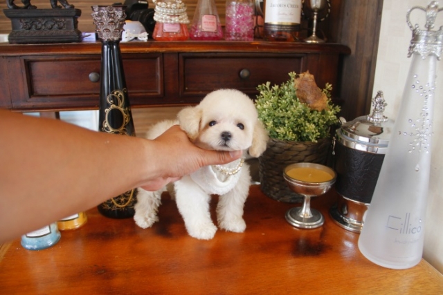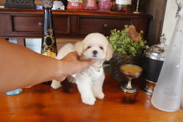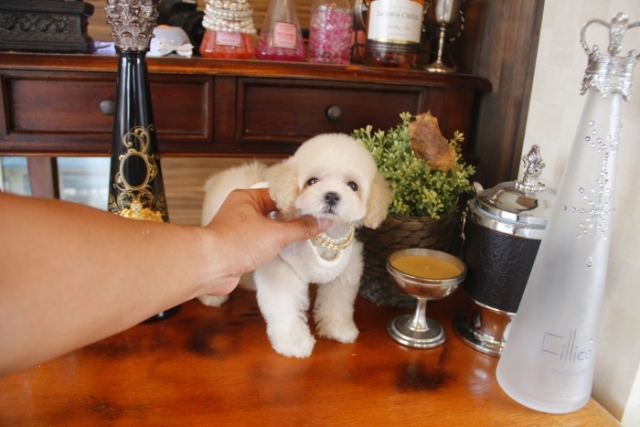 | コメント | 父1.4kg 母2.4kg ショートボディのドワーフ♥ 小さな体でとことこ走る姿はたまらない可愛さです♥ 暑い季節涼しげな色のクリームの女の子とお散歩などいかがですか(*^-^*) 夏の間ご旅行などの時はお預かりもさせて頂きますのでご安心下さいね♪ 性格は人懐っこく、初めての方にも飼いやすい仔です☆ ペットショップやオークション出しのブリーダーと違い欧米のブリーディング同様、親や兄弟と社会期を過ごさせることで 人間と暮らした時にスムーズに暮らせるようにしております。 親犬達も家族として朝7時からドックランで遊び、全室冷暖房完備の部屋で過ごし、専門のスタッフや専門学校の方々と協力し合いながら 衛生管理に努めております。 犬舎の特徴としましては、東京や神奈川近郊の為マンションのお客様が8割を占めます。その為小さな1キロから2.8キロまでに収まるように、 母犬を2.8キロまでと決めてブリーディングをしている為、後で極端に大きくなる子はいません。 瞳の丸く大きなところやマズル(鼻先)が短いもの特徴で、父犬、母犬、全て私が全国の可愛いトイプードルを一頭、一頭厳選して親犬としてブリーディングした子犬のみを掲載しております。 こだわりとしては、お客様がお迎えされた後、その子がTV出演、雑誌やカレンダーのモデルとして活躍の場が増え我が家を忘れないでいてもらいたい為、 本気でこだわりを持って常にトイプードルを飼うなら此処だと皆様全員に思われる犬舎でありたいと思います。 ありがたいことに今では、雑誌やTV出演、カレンダーなど多くの出身トイプードルちゃんたちが可愛く撮影されお客様からも喜びの声を頂いております。 |