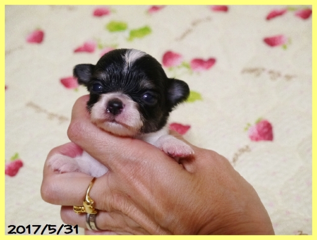 | コメント | パパはJKCチャンピオン直子の北斗君(チョコレート&タン) おじいちゃんは有名な世界チャンピオンのフェイマス君。 ママはカナダ、アメリカ、JKCチャンピオン直娘のまりえちゃん(ブラックタンホワイト) 両親共に2キロちょっとのコンパクトサイズで血統も良く性格の愛らしい人懐こいチワワちゃんです。 2頭兄妹で帝王切開で生まれました。母子ともに健康です。 お迎えいただけるのは生後2か月を目安にしています。 ワクチン接種と健康診断を動物病院で実施後にお引き渡しさせていただきます。 お問い合わせをお待ちしております。 素敵なご縁がありますように、、、、 |
