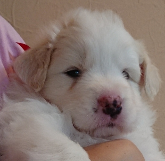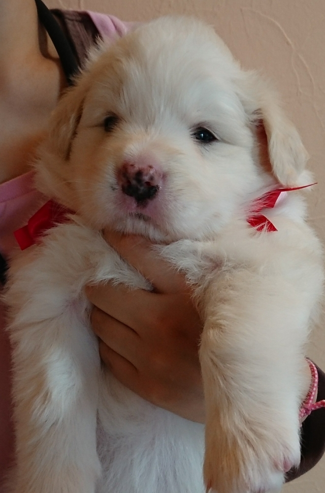 | コメント | 優しい印象のウィートンカラーの男の子です。 父 ブラック&ホワイト18Kg(オーストラリア) チャンピオン 母 ブラック&ホワイト17Kgチャンピオン直子 両親ともオーストラリア名門血統です。 ショードッグの血筋ならではのバランスのとれた骨格構成、生まれ持った明るく穏やかな性格は誰にでも愛され最高のパートナーとなり良き家庭犬となります。 ショーラインのボーダーコリーですが、母血縁の多くのボーダーコリーたちが訓練競技会、アジリティ競技会などでも活躍しています。 一緒にドッグスポーツも楽しめます。 |