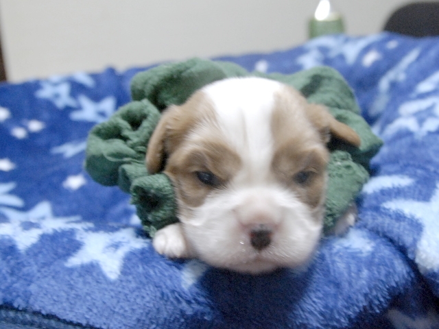 | コメント | お父さんはJKCチャンピオンの吉宗君、お母さんはチャンピオン直子のマーガレットちゃんから生れた3人兄弟の三男です。(緑リボン君) |
