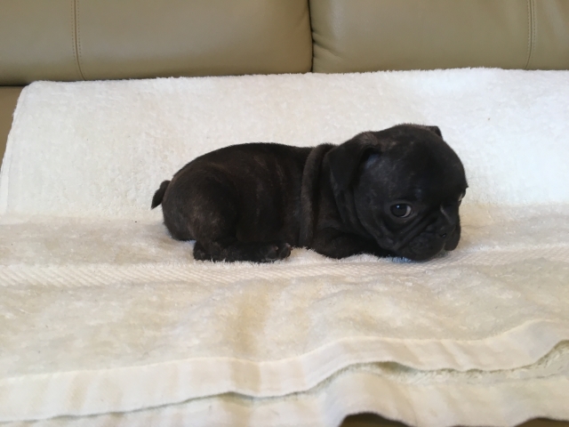 パグの飼育歴は30年以上になります。今年親の代から買っていた 黒パグを亡くしてから家を埋め尽くしているパググッズを見るたびに いつか新しい仔を迎えたいと思うようになりました。 北関東でブリーダーさんを探しているうちに木村様を知り、見学、購入の運びとなりました。 このたび性格も大変おおらかな素晴らしい仔犬をお譲りいただき大変感謝しております。 (茨城県 男性)