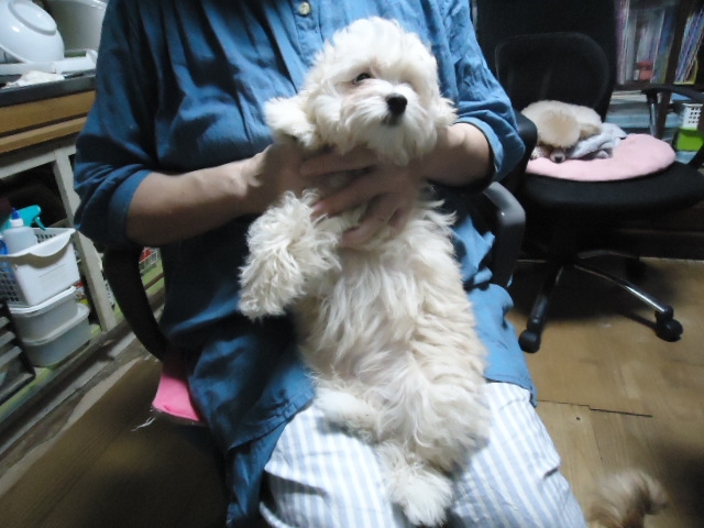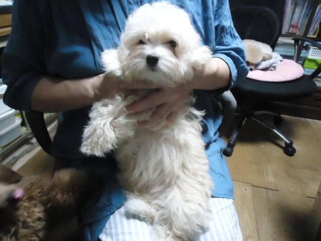 この度ご縁がありまして村島ブリーダーさんから可愛いマルチーズの男の子を譲って頂きました。犬を飼うことは初めてだったのですが2度ほど見学し、アドバイスも頂き、安心して子犬を迎えることができました。何かあれば電話でいつでも相談にのって下さるとのことで心強いです。子犬もとても元気でおトイレもすぐに覚えてとってもいい子です。ありがとうございました。(栃木県 女性)