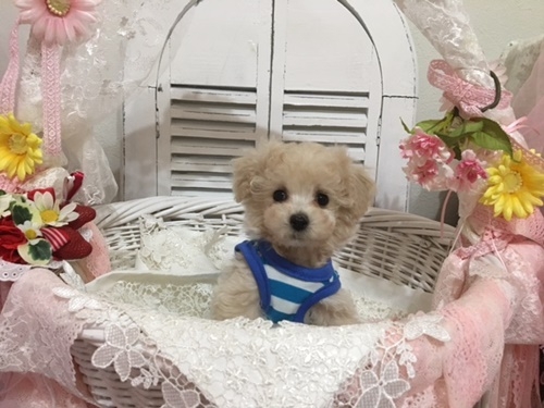 | コメント | ★パパ犬(AMチャンピオン・JKCチャンピオン)1,7キロホワイト ★ママ犬チャンピオン直娘1,7キロ アプリコット 予想サイズはタイニー 血統優秀!丈夫な子です。 性格明るく温厚でフレンドリーです。 ワクチン、健康診断異常なし。(PRA発症しません。) 初めて飼われる方にも安心して飼って頂けます。 アフターフォローもしていますので お気軽にお問い合わせ下さい。 ファミリー限定! |