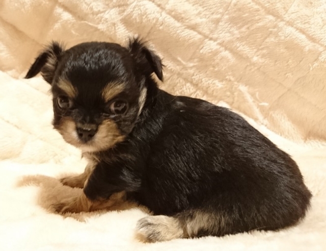 チワワ(ロング) ブラック&クリーム ♀(女の子) 滋賀県【 ブリーダーズ 】