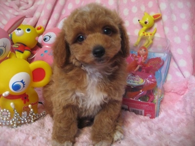 | コメント | お父さん・・チワワ お母さん・・プードル たれ目でまるいお顔が可愛い子です 優しいお顔立ちで ほんわか癒し系な男の子です 頭と胸に白い毛とすべての足先に 白い毛が有り手袋をしているようです はめた様に白い毛が可愛いポイントです しっぽの先もほんの少し白い毛があります ややドワーフ体系で歩く姿が愛嬌が有ります 毛質は緩やかなカールが有り 毛量も有りふわふわで プードルよりな感じです とても活発で愛嬌が有る可愛らしい 性格です 大人になって3㎏~3.5㎏前後の 可愛いサイズの仕上がり予想です |