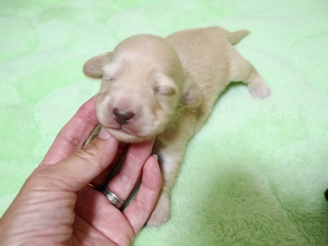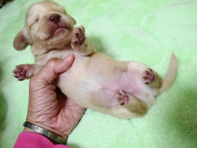 ミニチュア・ダックスフンド(ロング) ピュアクリーム(イエロー) ♂(男の子) 千葉県【 ブリーダーズ 】