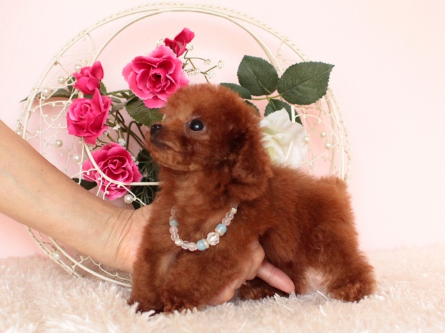 この度、宗様より念願のトイプードルレッドの赤ちゃんをお譲り頂きました。性格が穏やかな子犬です。 一匹一匹愛情込めて大切に育てられている様子がわかり安心して家族の一員にすることが出来ました。 子犬を大切に育てたいと思い、たくさん細かい質問をしてしまったのですが、丁寧に説明して下さり納得して決めることができました。 宗様のお人柄にも魅了されました。 これから、家族と共に幸せな時間が過ごせることを感謝し、成長した姿も見て頂きたいです。本当にありがとうございました。(神奈川県 女性)