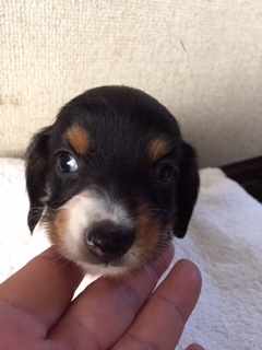ミニチュア・ダックスフンド(ロング) ブラックタンパイボールド ♀(女の子) 愛知県【 ブリーダーズ 】