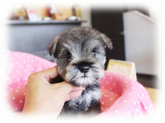 シュナウザーを主力にされているブリーダーさんだと認識しており、ボスちゃんはどうかなあと正直不安でしたがとても可愛く健康的なボスちゃんをいただきました。 掲載されていた写真より実物は想像以上に可愛くて即決し見学させていただいたその日に連れて帰りました。連絡をして、翌日行きますぅって勝手な申し出にも関わらず敏速かつ親切に対応して頂き大満足です。契約に対しても一つ一つ丁寧に説明してくださり、わかりやすかったです。この度は可愛いボスちゃんとのご縁をいただき、本当に有り難うございました。 (大阪府 女性)