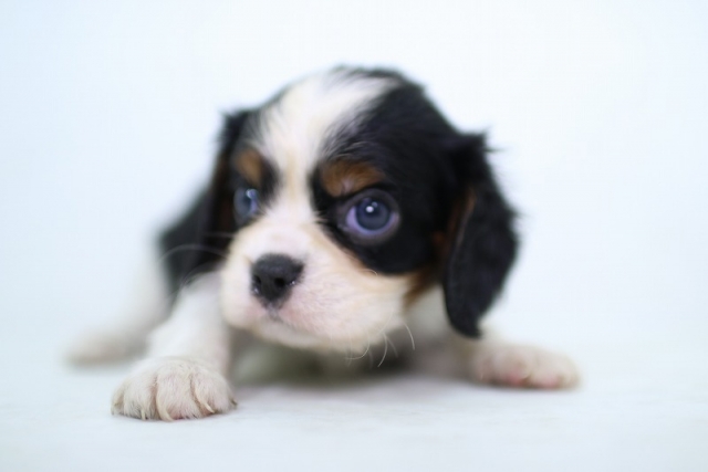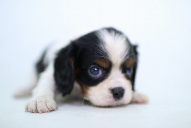 | コメント | 父犬ブレンハイム、母犬トライから生まれたトライカラーの男の子です。 目がクリクリしたとても可愛い男の子です。 写真では、少しきつく見えますが実物はとても可愛い顔をしています。 写真や動画では見ることのできない可愛さがありますので、実際に見学していただくことが 一番だと思います。 見学はいつでもできますのでお気軽にお問い合わせください。 見学の時間帯は午後1時~午後5時ごろまでです。 午前中の見学をご希望の方はお伝えください。 |